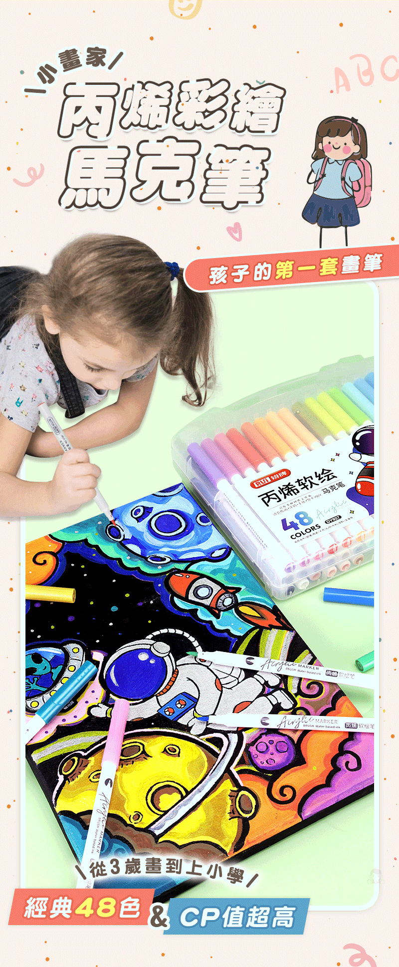 5分鐘前丙烯彩繪馬克筆 超強覆蓋力,萬物材質皆可畫,專為兒童研發,輕鬆擦拭不卡色 - 【一套】丙烯彩繪馬克筆 (48色)NT$580