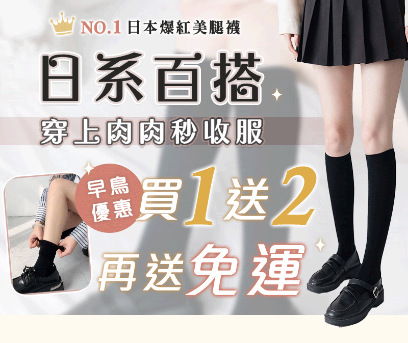 2分鐘前微壓顯瘦小腿襪 - 買一送二/ 再送免運 NT$499